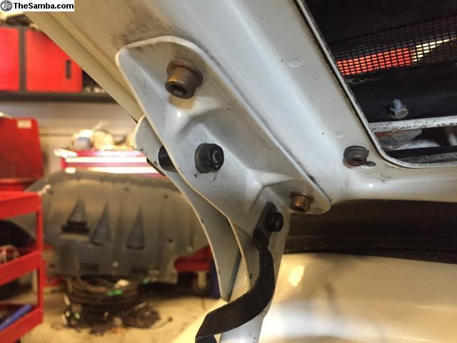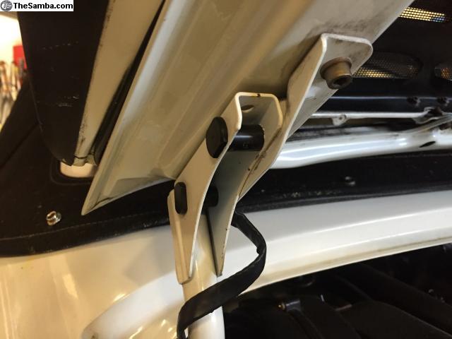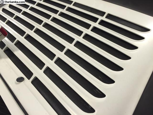 Porsche 964 C2 C4 RS America rear spoiler wing. Rear spoiler and deck-lid as found on 964 RS America. Appears to be factory paint, GP white. All complete including the hardware/hinge adaptors to work on 964 chassis. GENUINE FACTORY PARTS. Very nice shape. Hard to find item.
