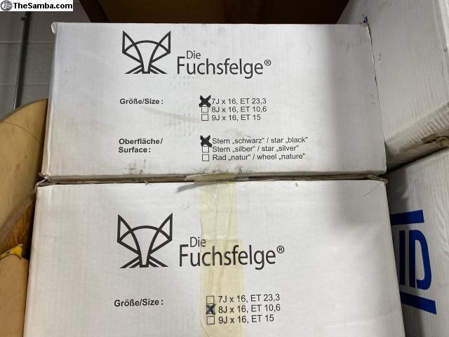 Porsche 911 930 7x16 and 8x16 Fuchs NIB. These are recent FUCHS manufactured wheels, new in boxes. 2 front 7x16, and 2 rear 8x16. Fuchsfelge