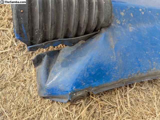 911 left front lower fender / bumper with bellows damaged. Dent near bellows. Removed from 1977 911S