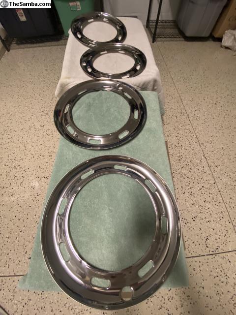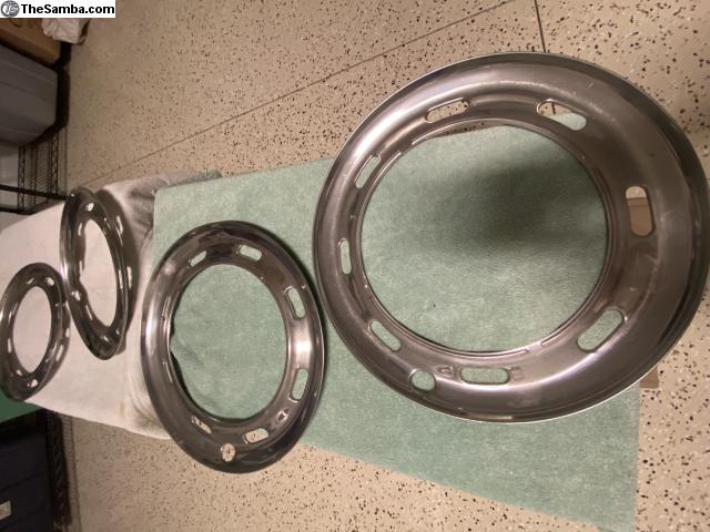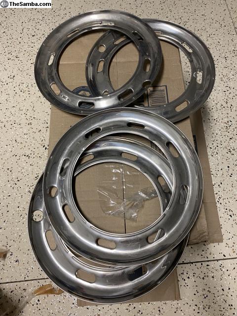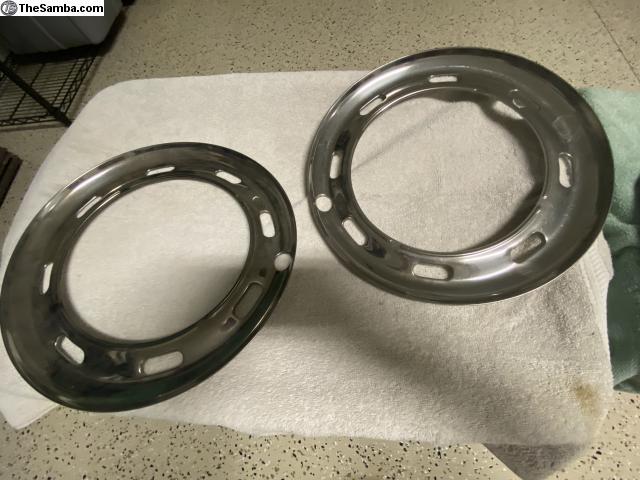 Don't waste your time with cheapos. These rings are the heavy stainless steel type and not the aluminum types. They are new and never have been installed. They will fit Ghia's 67 and later, Type 3 and 4 1966 and later and Beetles 1968 and later with steel factory VW wheels. They will dust off easy and are in perfect condition!