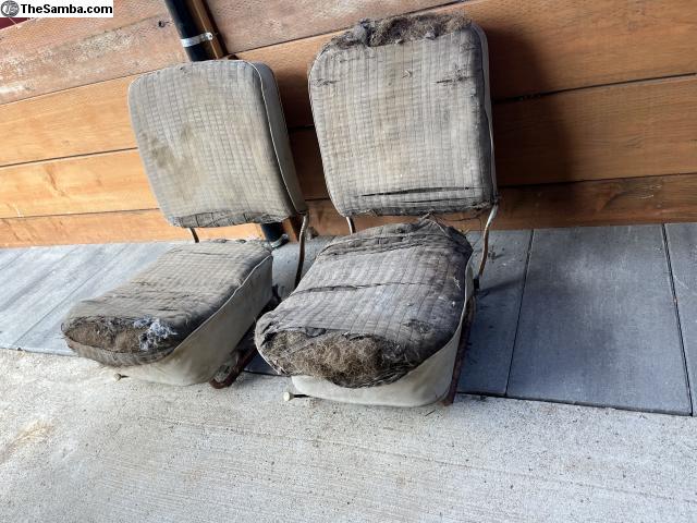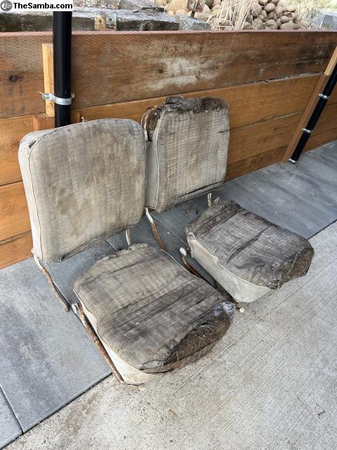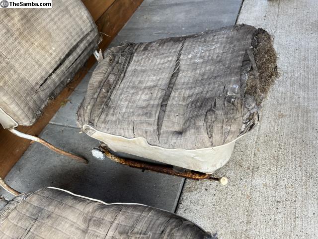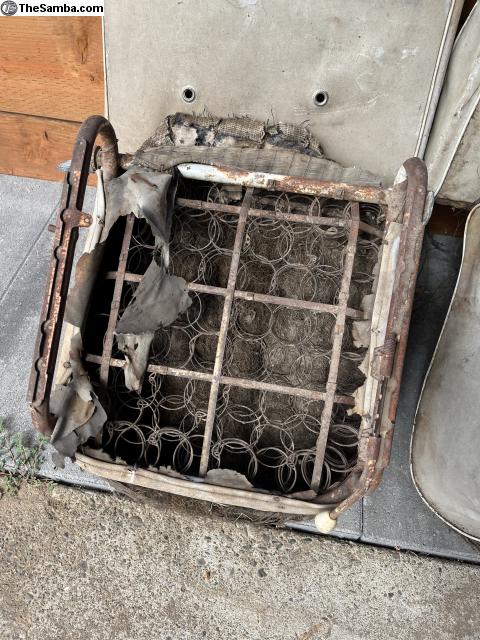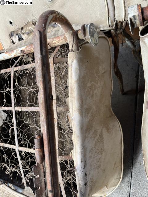 Look complete. Except for missing one return spring on the adjustment bar. And one stud to hold the back rest straight. As seen in pictures.