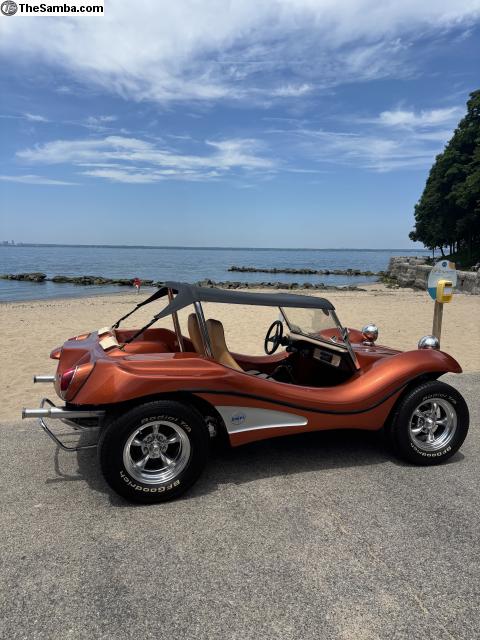 1970 EMPI IMP SHOW WINNER. This is a TJ Kustoms built buggy. This buggy was built from the ground up. Everything on it has been completely rebuilt or brand new. The chassis was sandblasted and coated with POR 15. All brake components have been replaced. This includes all hard and soft lines, new calipers and drums, master cylinder, all pads and shoes as well as new wheel bearings. It has a puma lowering beam with a manx front bumper welded in place, new steering box, new shocks, new ball joints and tie rods. It has a new rancho pro street tranny and clutch. New 1641 motor with electronic ignition, tri mill exhaust and an external oil filter. It sports American racing rims BF goodrich radial TAs. Body has been painted in house of colors metal flake orange with silver inlay. Seats are from a Mazda Miata and reupholstered with ostrich vinyl. It has a kustom padded dash to match. TJ Kustoms molded carpet and top. KEITH 516-322-7270