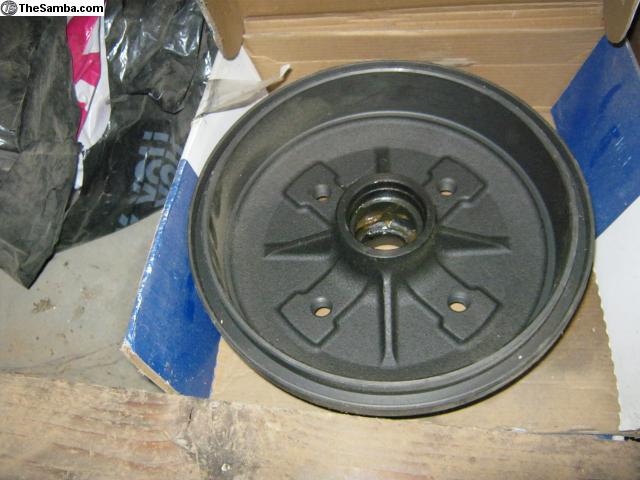 2 new front brake drums. See pictures for numbers. Ball joint front end. NOT Superbeetle. Had bearings installed but was never driven / used on car. Both drums for $35. Local only. No shipping!