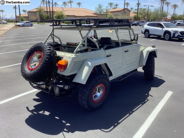 1973 Volkswagen Type 181 Thing. Fun off road car, draws lots of attention. This car was built to explore and go overland. A show car it is not. I didn't want a car I would be worried about scratching or whatever. I always trailered it to places around the Southwest especially to watch off road races. It handles great in dirt but the steering is very quick and must be handled delicately on pavement at speed. It doesn't have sway bars so it has lots of body lean in corners on hard surfaces.
