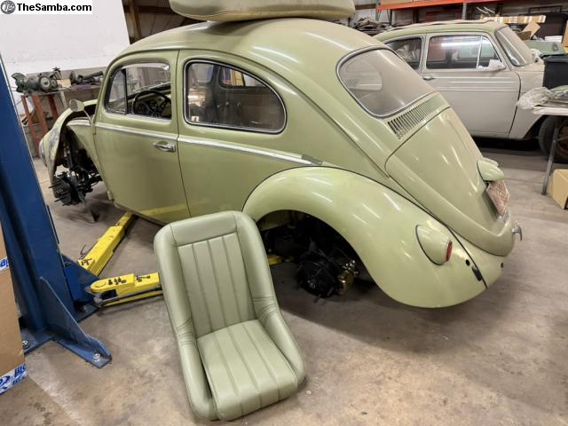 These were special order seats in Symphony Green Vinyl which have custom stitching. These started from the EMPI Low-Back Roadster-Style Seat, Black, Part Number: 62-2880-0 See EMPI link: