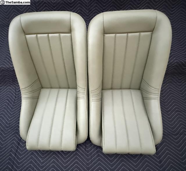 These are NEW custom ordered HEATED seats completed by Sewfine Interior Products of Denver, CO and never used. They were patterned after the 2023 EMPI SEMA Build '62 Volkswagen VW GTV II Ragtop Beetle Bug Tribute. See link: https://empius.com/empi-gtv-ii-ragtop-beetle-tribute/