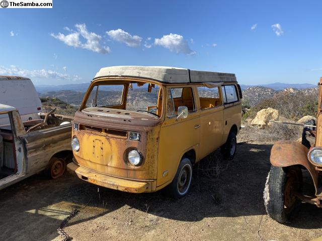 Westfalia with original top. Previous owner removed engine and transmission. Body is solid with some needed patch panels in few places. Have sheet metal for rear wheel arches. Have original Westfalia interior.