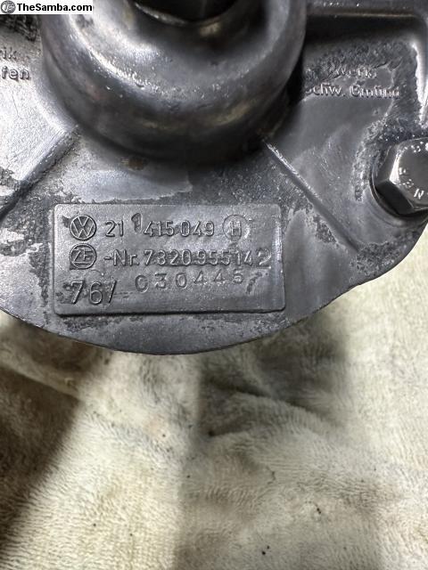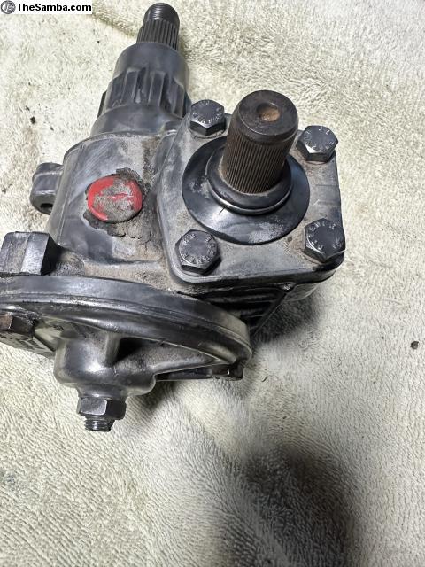 Good used German late bay steering box. Had a little play but not bad. We switched to a power steering kit. Use as is or restore.