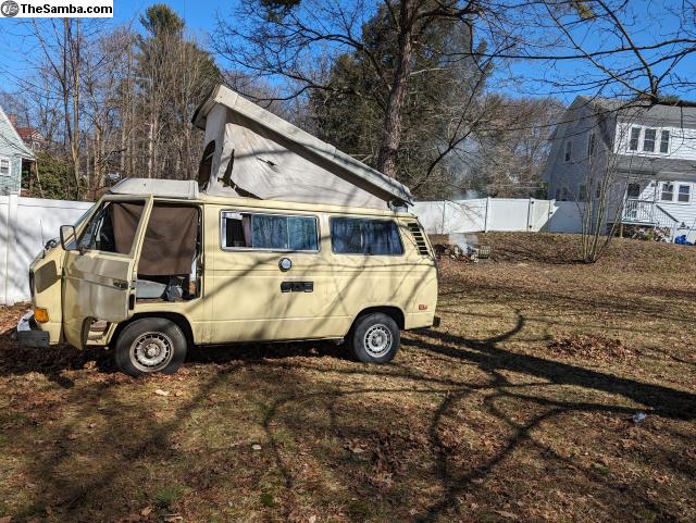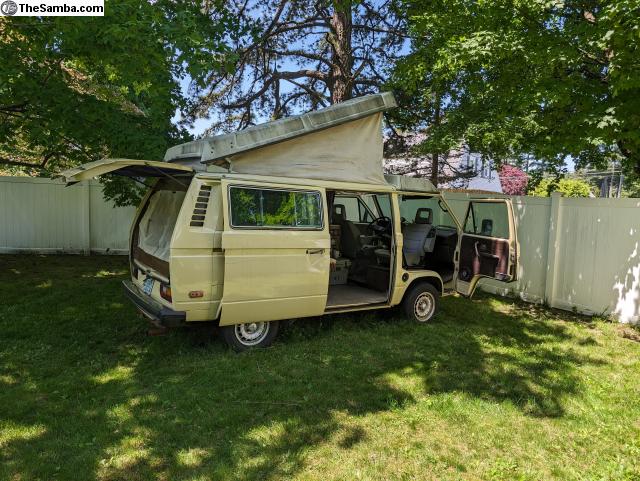 1981 VW Vanagon Westy. 143k miles. I have owned her since 2012 (bought her on this website). Had motor rebuilt in 2015 and bodywork and paint in 2018. Ivory Beige. Upgraded front seats out of a newer model. Carbureted motor. I've never driven her in rain (garaged in winters) Runs well. Reason for sale? I never get to drive it. Needs:Tires and a new top (top is original)