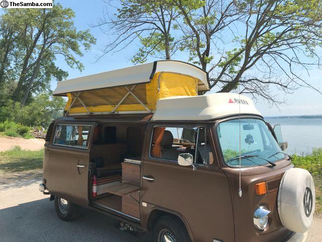 1979 VW Camper - Riviera. 2000cc fuel-injected, electronic ignition. Runs and drives great. Everything works(sink, stove, etc.). It comes with a Bus Depot awning, Fiamma bike rack, second battery, power inverter and new - in box -under the dash parcel shelf.