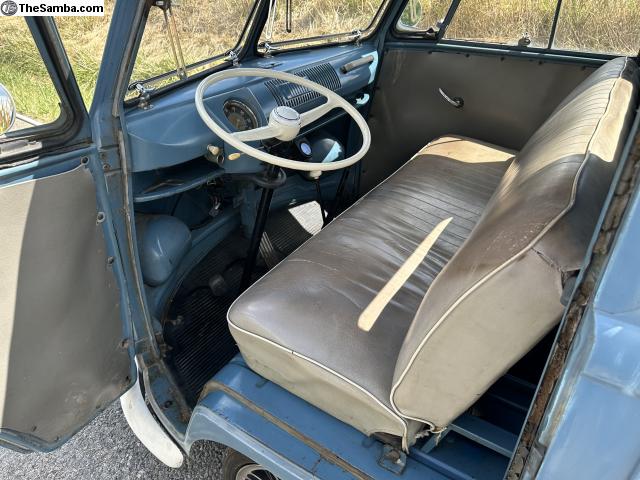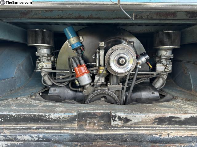 Truck runs, drives, and stops as it should. I’ve driven it all over, and I wouldn’t hesitate to drive it anywhere. Good running 1776cc engine with dual kadrons. Freeway flyer beetle transaxle. Doesnt grind or pop out of any gears. Drop spindles with stock front beam. Creative Engineering safaris. CSP front disc brakes, missing driver side grease cap so no speedo currently. Vintage speed exhaust. Repop cosmic wheels with newer tires. All lights work as they should. Hella H4 headlights. Rear passenger tail light lens is cracked. Door panels are in rough shape, and missing kick panels. Added a fuel gauge. Has a bus rear bumper. License plate is not included.
