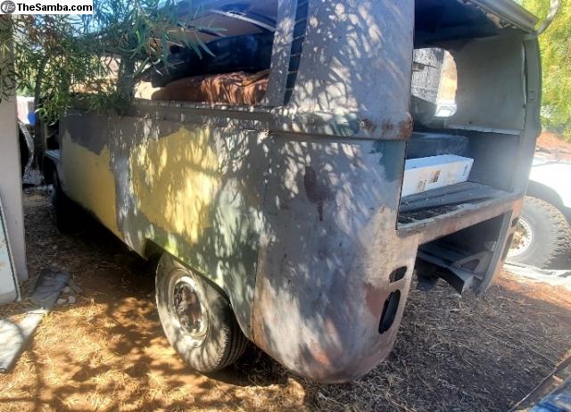 Bus disassembled, media blasted, KlassicFab front nose clip, doglegs and rear wheel arches installed and straight forward basic bodywork started