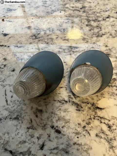 Original dove blue bullet turn signal housings complete. Lenses aren’t the best but still in one piece. These came off a 57.