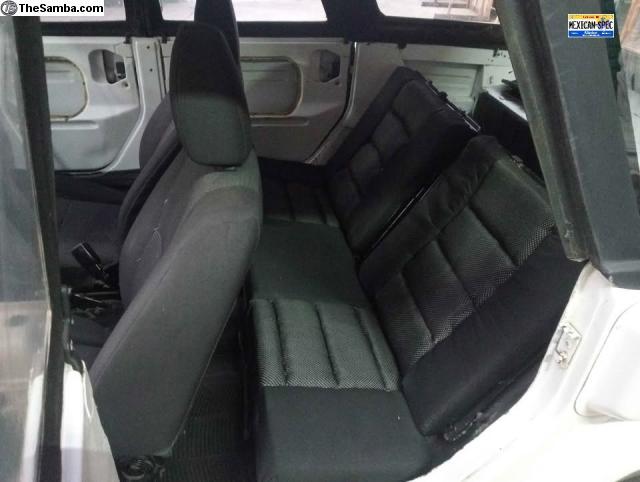 The interior features black cloth front buckets. The rear seat matches the front. I know, the cloth isn't the most weather-proof material but that is why it has a hard top.