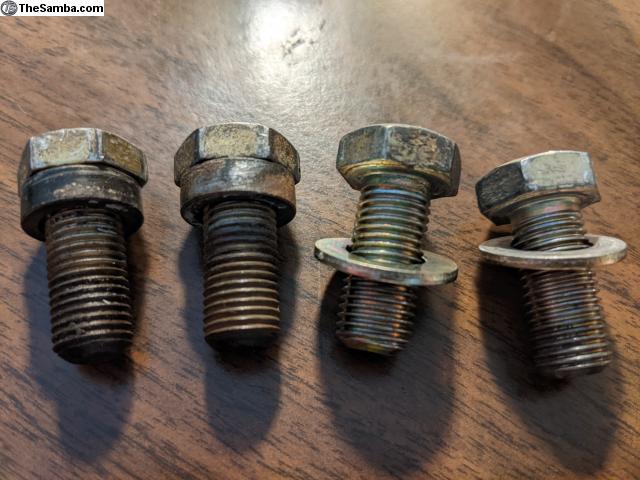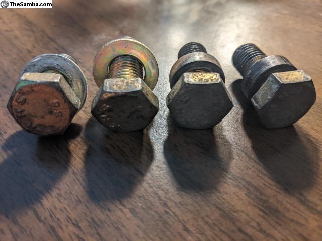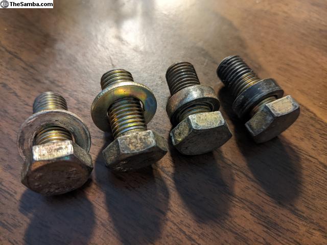 Selling four original seat belt bolts with spacers and washers. All good shape, came from 1985 Vanagon Camper.