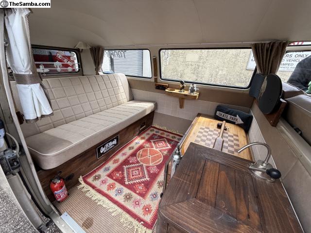 Known as the "Bang Bus", this early 1969 micro-bus has been recently updated both inside and out, offering a fresh interior and two new front seats professionally installed by Bromsgrove Auto Trimmers.