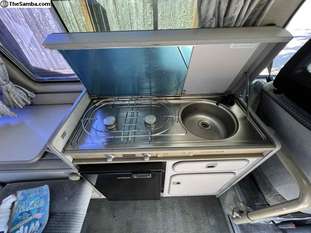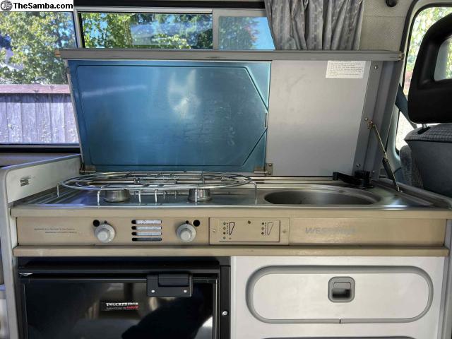Silver Westfalia camper van, grey interior. 118,900 miles. new brakes, up to date on all maintenance. Newer tires and battery, Will include camping equipment. Has most of the original interior - in nearly pristine condition. Fridge has been recently replaced and is brand new and unused. Manual transmission no air conditioner