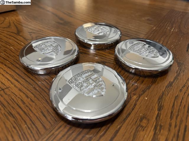 Fully Chrome Porsche Alloy Cookie center caps Price: $250