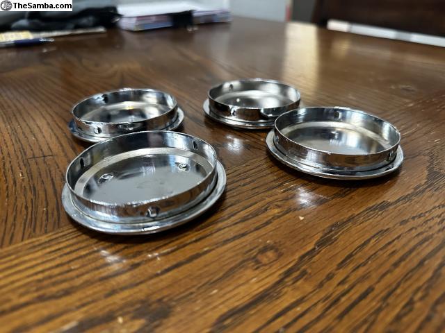 Selling a complete set of fully Chrome Porsche 911 Fuch Center Caps. Ring style, will fit your alloys, Cookie Cutters or gas burners wheels.