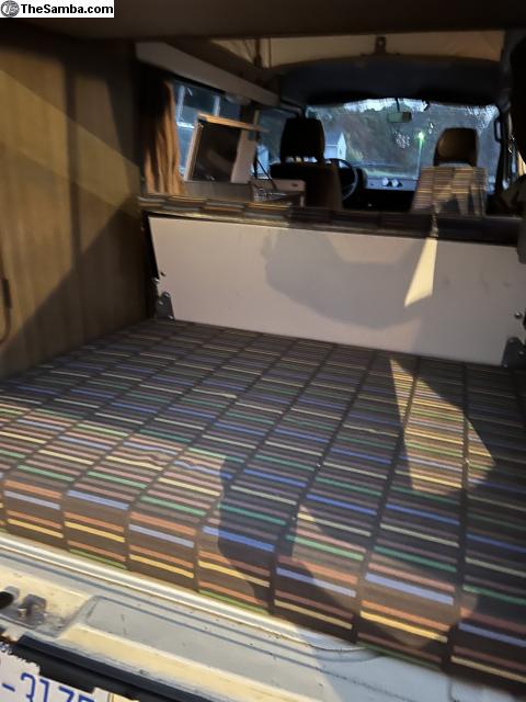 The van is camping-ready with hookup box replacements, and water pressure regulator. Additional features like a Go Westy rear hatch screen, storage organizer, and dual gauge pod for monitoring oil temp and pressure make this camper fully equipped for road trips.
