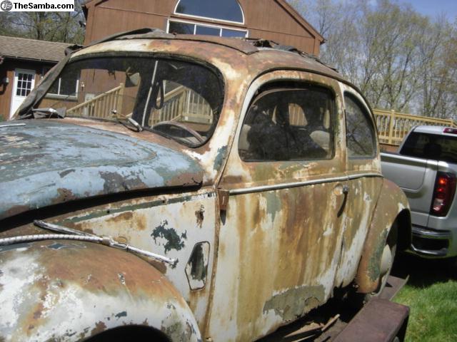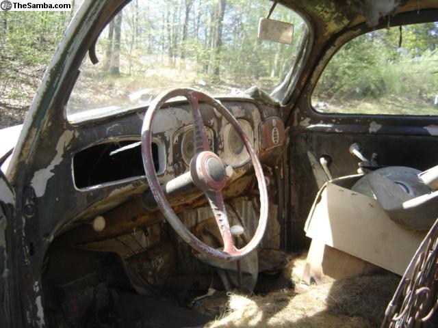 Dash in good shape and has pods and gauges..No semaphores and incorrect seats. Car even has some of the original grooved outside trim. Car needs heater channels, floors, engine compartment shelves, rear apron, bottoms of doors. Running 36 hp in car. 15 inch rims and not the correct 16". Correct front axle, rear tranny is a later split case. Car will need total resto. More than I want to take on at this point. No title for this car, CT doesnt require them. Best offer on this car will be considered. Not parting car out at this point. Located in Connecticut.
