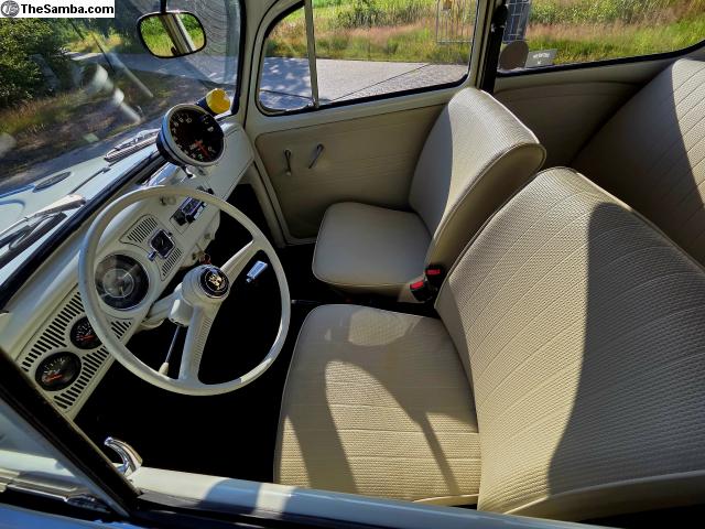 On the inside we gave it a couple of extra gauges (tacho, oil pressure/temp. and fuel (the car didn't had one) and it still has the original steering wheel. And we also added a Gene Berg-shifter and the seats recieved new stuffing and tmi-covers.