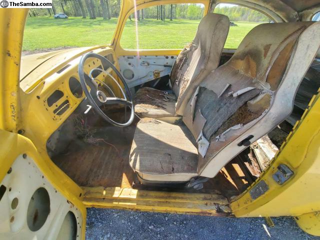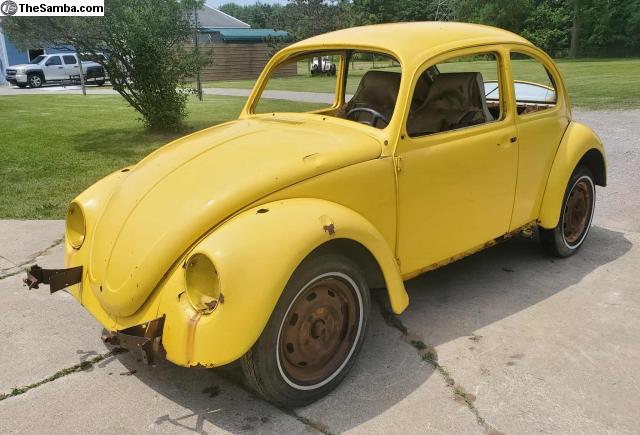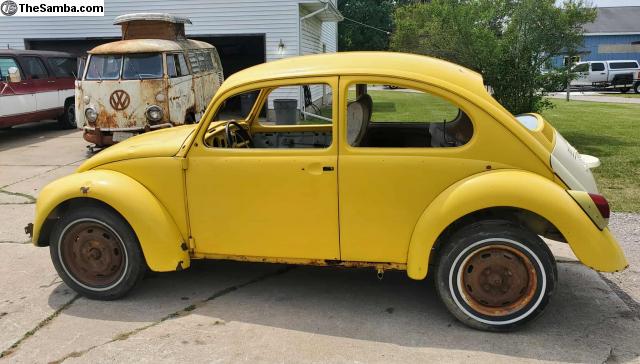 1970 Volkswagen bug standard beetle. Irs transmission not sure of condition, no motor, comes with some of the glass. Has seats , car was torn apart and painted years ago and never finished. Needs redone again due to dents and dings, pretty solid car over all. Heater channels look good. Floors are decent. $2500.00 no trades.