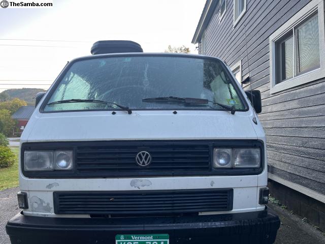 1988 Vanagon GL ready to go, white with 2.1L engine that has about 222,000 miles on it. Manual, engine was rebuilt by previous owner. Comes with detailed service history from PO and lots of recent work. Mechanically very good with some cosmetic dings and rust spots on the body (shown in pictures) that need to be addressed.