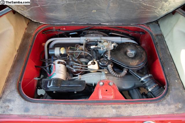 The engine and transmission were rebuilt before my ownership. Both run well with just over 1,200 miles since. The engine is correctly dressed, though showing some age. The NOS engine lid has the correct diamond-pattern insulation. Transmission shifts smoothly and the car has plenty of power. Last year it completed the 800+ mile trip to and from the Type 3 Rally without issue.