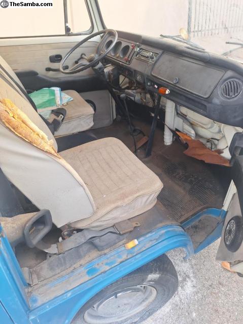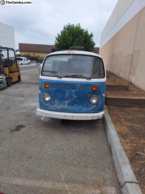 "74 bus, complete save for a broken left rear window and a side view mirror. Sitting many years but ran well. Four flat tires. Front end damage (reason it was parked). Other than surface rust from sitting, no rust. All floors solid. Complete interior. Comes with manuals.
