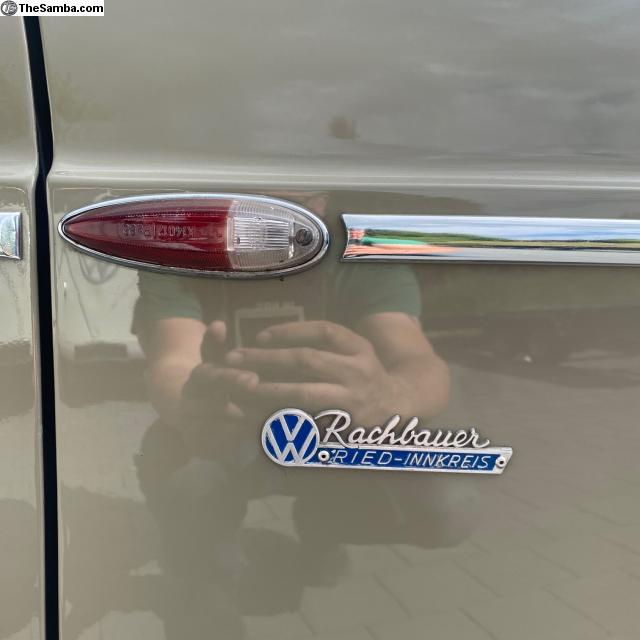It has a supernice dealership badge at the rhs front fender (metal one) and black VW logoed mudflaps.