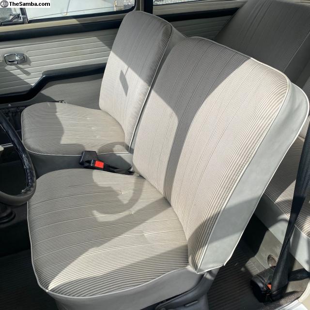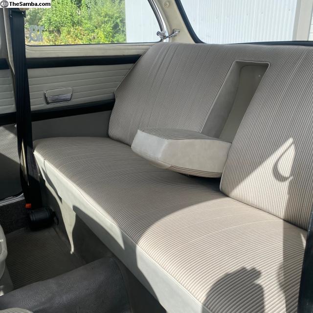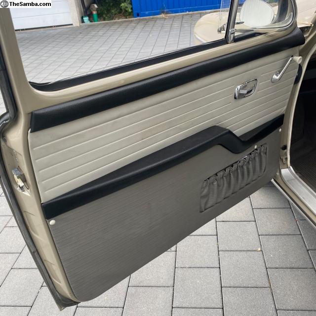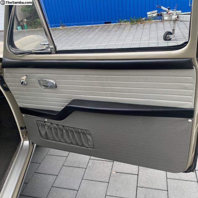 The interior is completely original and in great condition considering its age. The carpet on the right inner sill has unfortunately been eaten a bit by moths, but I was able to stop them before it got worse. You can't really see it when the door is closed, though! The armrests, door panels, the headliner, and the dashboard are crack-free! The driver's seat is completely intact and undamaged from getting in and out of the car, and the other seats are, of course, the same! 60s charm as far as the eye can see! Hard to find these days!