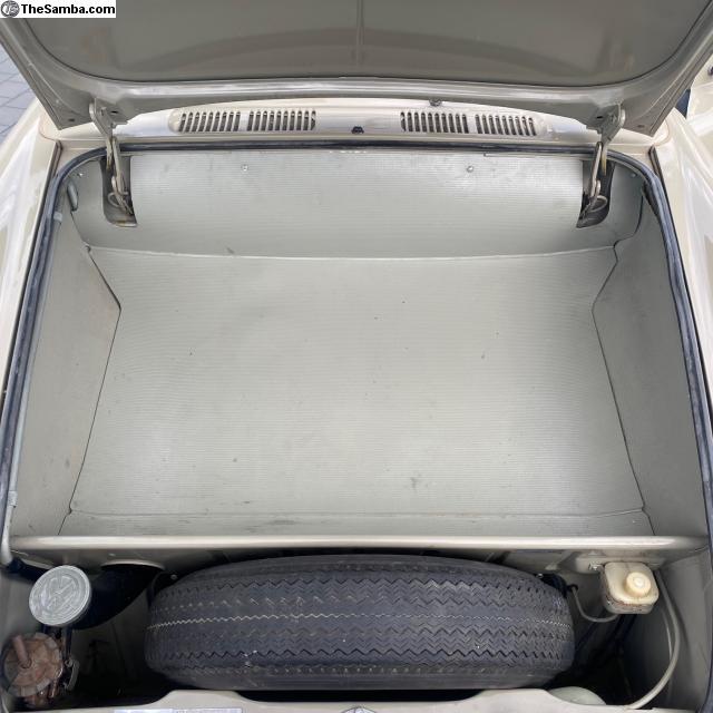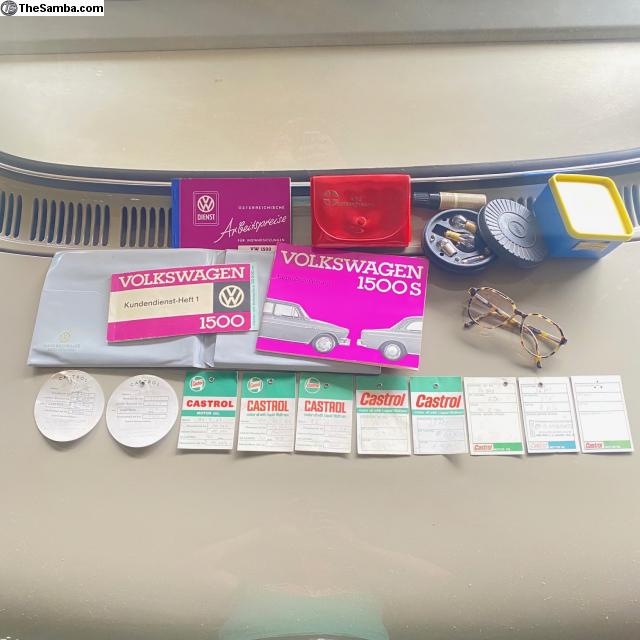Repainted once in the 80s – according to the previous owner. That was only three persons, by the way, the last two were a father/son team who supposedly only drove the car to classic car events. The original service booklet and owner's manual are included. Furthermore, the first 11 oil change checklists, starting at a mileage of 2701km on October 11, 1965 and ending on July 14, 1978 at 28967km - so an average in the first 13 years of around 2250km PER YEAR!