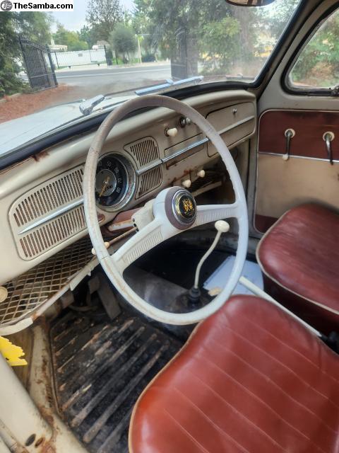 1958 September, Alabaster is the color, very rare for a sedan as they say its only a convertible color. 6 volt car still, newer battery, brakes, shocks, oil change, rubber lines, master cylinder, brake cylinders, and window rubber. Still has the orginal door panels, all original metal never taken off, car is pretty dam straight for its age, has a few little imperfections. All windows have matching logo, still has a split case tranny and 36 horse. 36 horse was a later in life rebuild about 10K miles ago, car runs like a top. Car has been daily driving since January 2025. Please ask questions as needed, TY