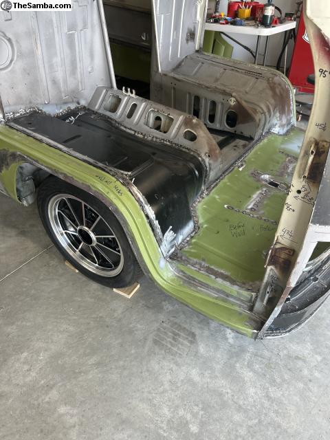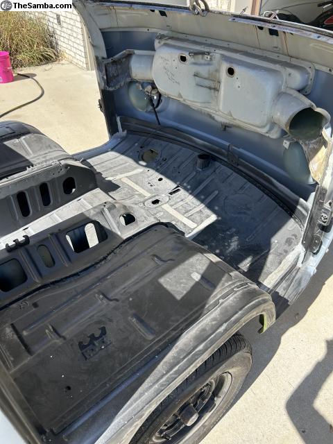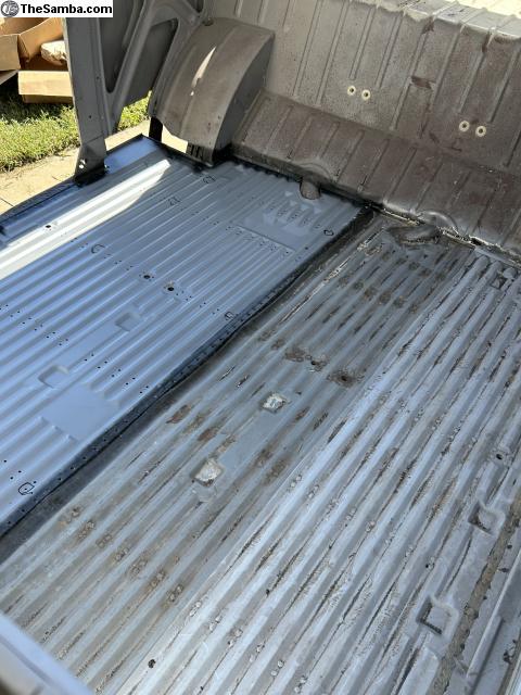 Sheet metal that has been replaced. Nose panel, cover plate inner and outer front end support,front end support outer brackets,passenger seat pedestal, inner and outer dog legs both sides,driver inner and outer rocker, rear cab corners and battery floor both sides,hinge carrier for engine door, cargo floor drivers side, cargo floor passenger side not welded in, outer rocker passenger side not welded in.