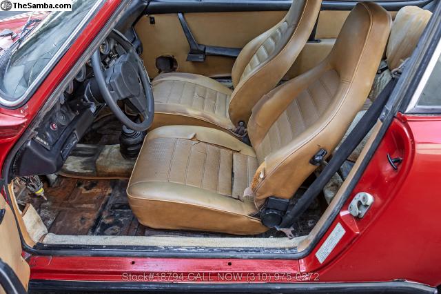 Powered by a CIS fuel-injected 2.7-liter flat-6 engine (175HP) that is paired with an engaging 915 5-speed manual transmission. Additional equipment includes a four-wheel disc brakes, single exhaust outlet, Bosch branded taillights, Whale tail rear spoiler, rear bumperettes, aftermarket non-original slant nose bodykit, VDO instruments, 3-spoke leather steering wheel, 16-inch Fuchs forged alloy wheels, and a spare tire. Featured amenities include bucket seating, driver-side rearview mirror, Blaupunkt radio, and an analog clock.