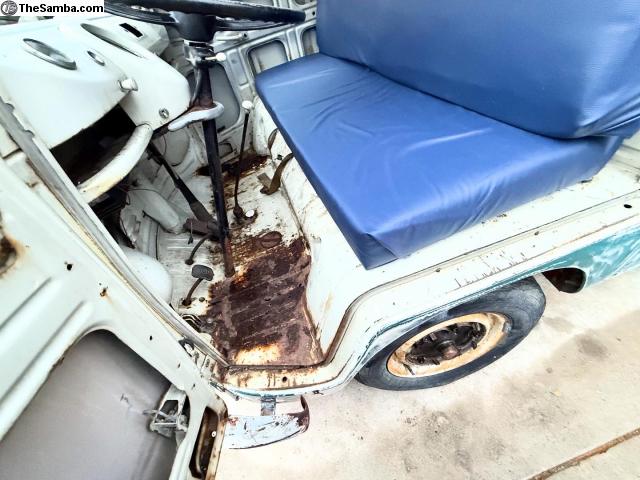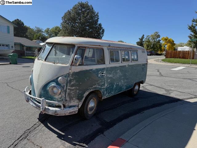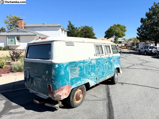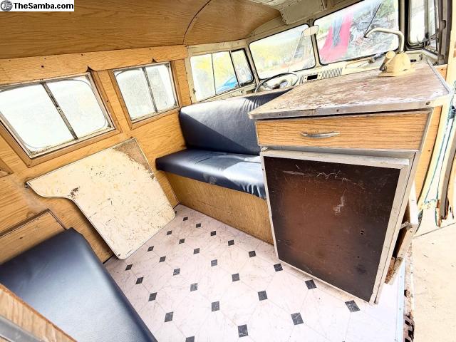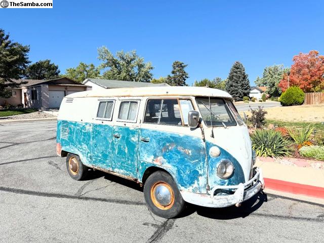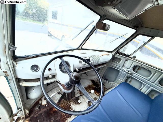 Up for sale 1965 split window bus project. 1600cc dual port running engine that starts right up, big nut transmission beautiful uncut dashboard on Og paint. Some rust on outer rockers and front floors. Cargo floors are good. Undercarriage is great all the outriggers and jack points are solid. The interior is a complete roadrunner interior from back in the day. Bus is been seating for a while so no you can't drive it home!(it needs brakes) Clean CA title on my name with a none up. So no back fees! The og paint shows under that blue respray. Bus is located in Reno Nevada. Will ship at buyers expense. Absolutely no trades! Asking $19800 what you see it's what you get!!!