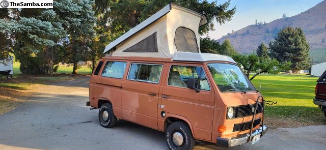 Recently purchased and selling to fund other projects. It was originally a diesel Westy but converted to a 1993 VW Fox engine at some point. I have a folder of the parts details, etc. Looks like it was sitting for a few years before I bought it. Its running and driving now but still needs a few things sorted out. New Go Westy grills on the nose, new seals on the poptop, and fresh oil and filter. Needs new tires. Very rust free body with mostly original paint. Very complete van with bug screen for rear hatch, all the curtains, and I have the additional swing table behind the drivers seat. I have a clean WA state title but waiting for it to arrive soon. I can help with shipping if needed. Make an offer!