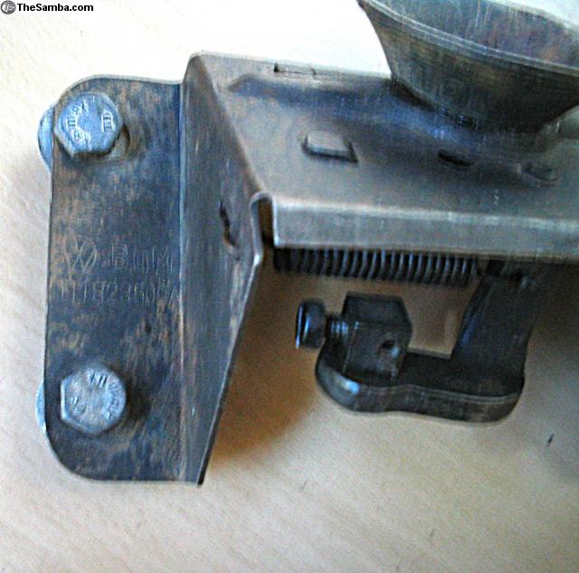 Here is a very nice 60 & earlier 4 bolt front hood latch, VW Bum part # 111.829.509A, complete with original Kamax mounting bolts, nuts & washers, $65 shipped within the USA. Thanks for looking and please check out my other ads.