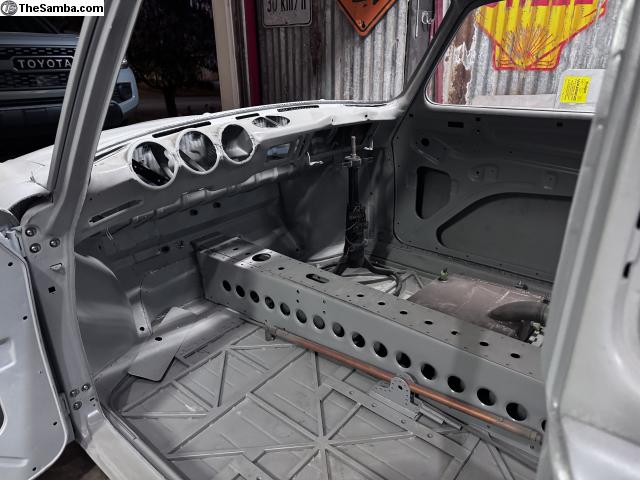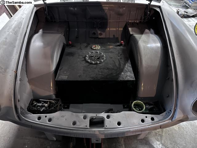 If I could do things over I would have not modified this car being such and early car. I bought this car 23 years ago after it was pulled out of a farm field. The bottom 6" didn't exist and the backend was 4" lower due to a heavy accident. It was a mess so I thought why not. Completely fabricated pan, double a arm front suspension and 944 rear suspension, including air ride shocks. Metal work is 90% complete does need a skim coat of mud. Car has been epoxy coated. It does not have a engine or transaxle, they are being solid in other adds. Car has all glass except front windshield. Has original notch seats, or bomber style seats. Fuel cell, Porsche wheels, hubs and rotors. Has gauges, door handles, trim etc. 914 rack and pinion steering, original column or 914 column. Has turn signals, and lenses. Button dash.