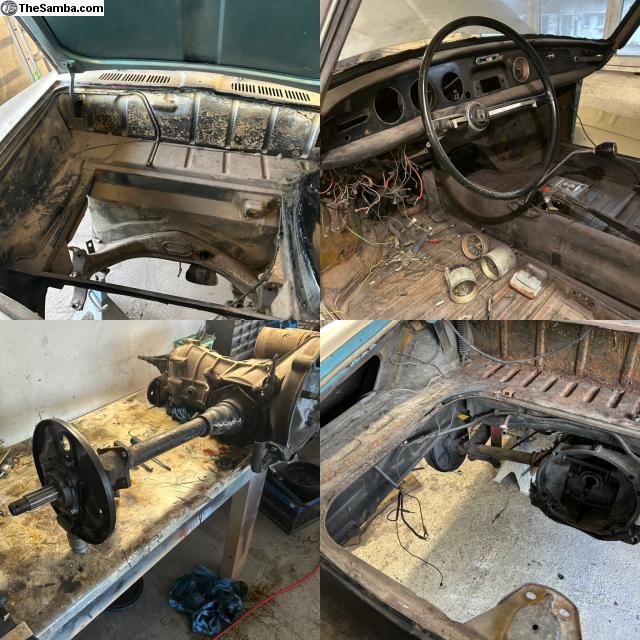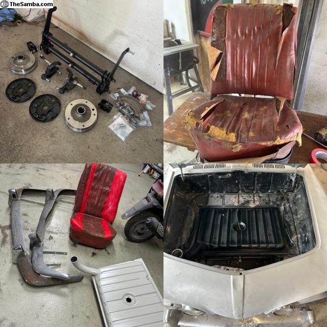 Verkaufe mein Karmann Ghia Projekt (Baujahr 1962) Das Fahrzeug war blechmäßig in gutem Zustand. Leider hatte es früher einmal einen Front- und Heckschaden, der damals nicht fachgerecht repariert wurde (siehe Bilder). Ich habe das Fahrzeug komplett blanke geschliffen und die Dellen sowie den Unfallschaden grob in Form gebracht. Geschweißt werden musste nur wenig - die Bodengruppe wurde lediglich weiter geflickt. An Schwellern, Radkästen oder Ecken waren keine Schweißarbeiten notwendig. Da ich den Wagen im Used-Look restauriert habe, wurden alle vorhandenen Dichtungen beibehalten. Die Karosserie wurde außen komplett in der Originalfarbe Schwarz im Erstlack-Look (Zuberle Design) neu lackiert. Technik: Motor (mit X gekennzeichnet) und Getriebe wurden wieder instandgesetzt, zum Laufen gebracht und verbaut. Innenraum: • Sitze neu bezogen (Sattlerarbeit) • Teppich Marke Eigenbau (vom Sattler eingenäht) Neuteile: • Kabelbaum Batterie • gekürzte Dogback-Achse mit TAS usw. • Airthed 1" Schwerter (verstellbar) • Bremsen und Leitungen komplett neu • Innenausstattung Das Fahrzeug fährt, lenkt und bremst. Kilometerstand unbekannt. Alle nötigen Papiere, Geburtsurkunde usw. sind vorhanden. Verkauf erfolgt als Projektfahrzeug ohne TÜV, so wie auf den Bildern zu sehen. Bei weiteren Fragen stehe ich gerne zur Verfügung.