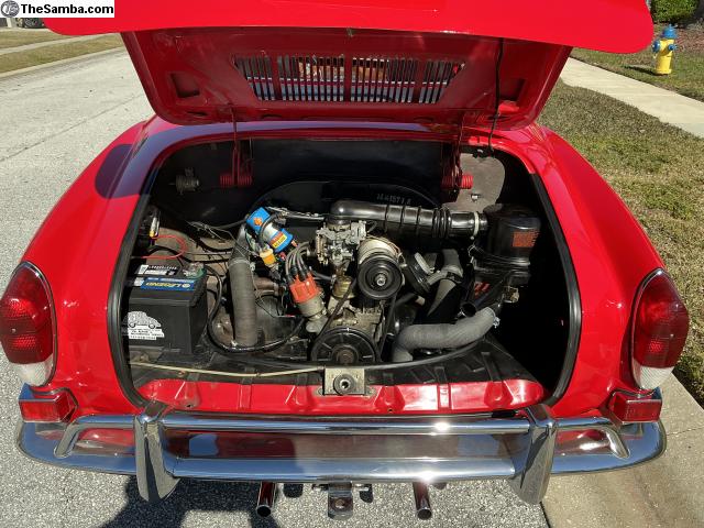 1970 Karmann Ghia Convertible. Matching numbered car. Have the German birth certificate. 82,500 Mileage might be actual. Original color was Pampas Yellow , painted Bahia Red now. Canvas top in great shape. Maintenance kept up, which includes Newer brakes/lines, plugs, wires, cap, shocks, electronic ignition. Floor boards and tires are in good shape. Has heat. Runs good. Drive anywhere. Has one numerous shows over the years.