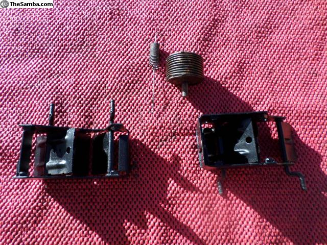 Dog House Thermostat assembly for any VW fan shroud. Included are Left and right thermostat flaps, The spring to doghouse, and a working thermostat, rod and thermostat mount.