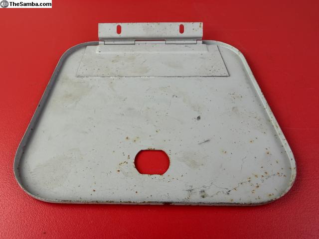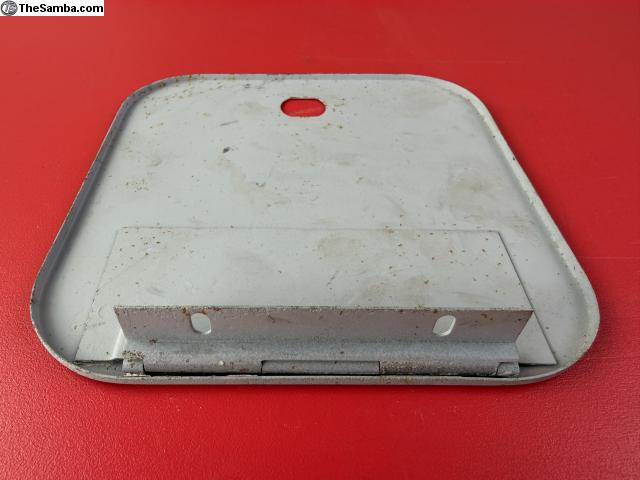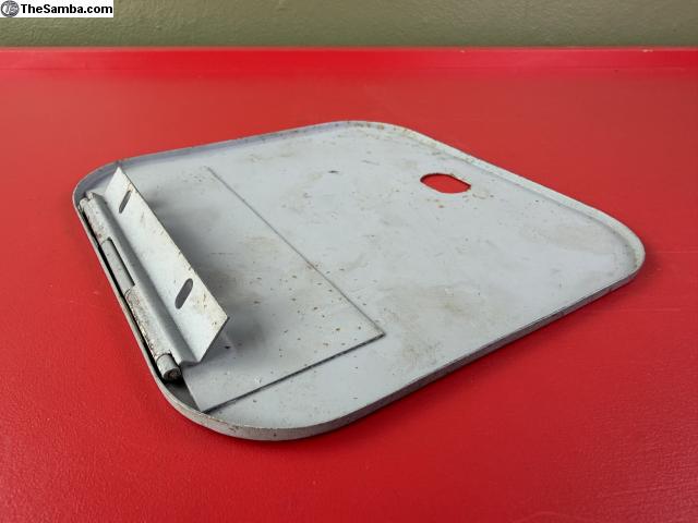 Original Volkswagen bus gas door in very decent usable condition. To the best of my knowledge this should fit most VW busses 1955-1966. It's in good dry condition with primer and and a good working hinge but it's not perfectly flat but not very noticeable. Great for parting a bus back together,upgrade,restoration or repurposing