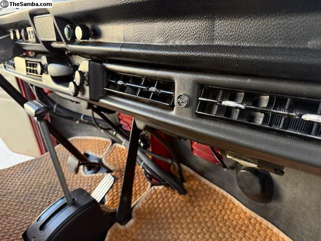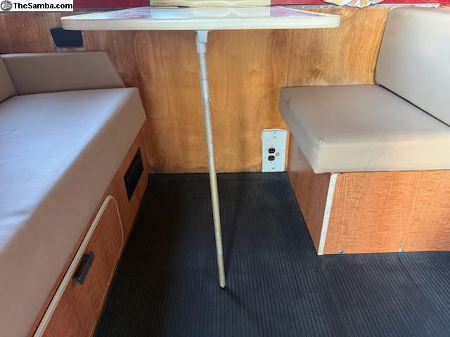 Straight body, good paint, powder coated bumpers, original Westfalia interior intact with Z fold-out bed, closet, table, jump seat, stool, kitchen/sink cabinet was removed for more room, AM radio & tach work, a/c is a DPD under dash unit (a vintage dealer option) with new a/c lines, dryer, condenser, Vanagon rear heater.