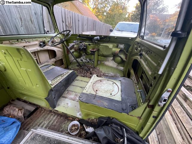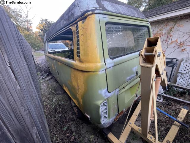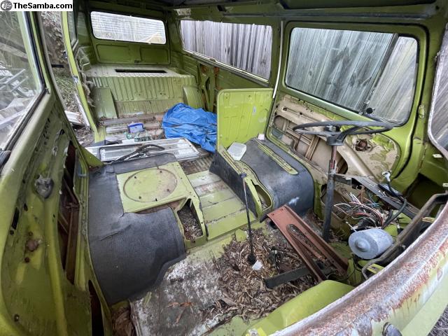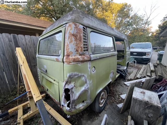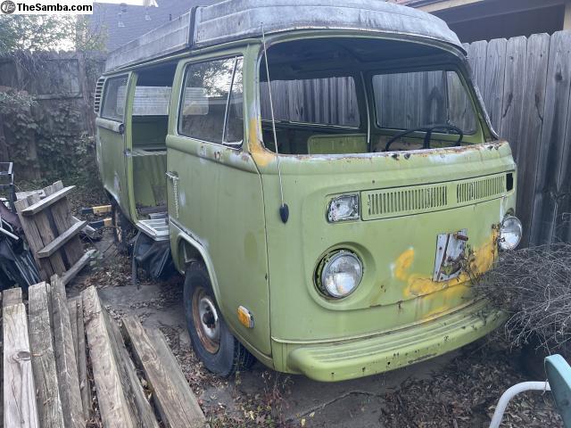 This is a 1978 Westfalia. Interior is gone. No running gear. Sliding door comes with the van, but isn't attached. No title.