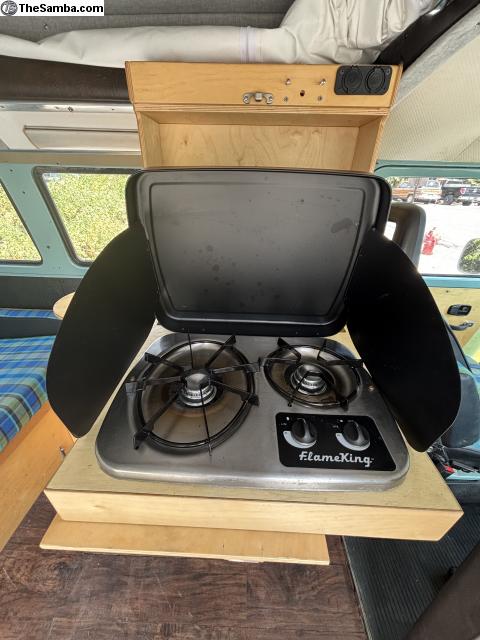 lots of extras not pictured: Flame King 2 burner cooktop, fully upholstered seat with storage for behind passenger seat, sink/storage can be swapped for cooktop.