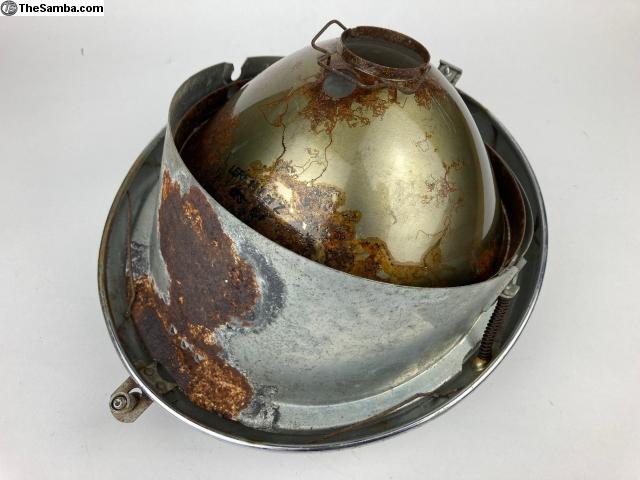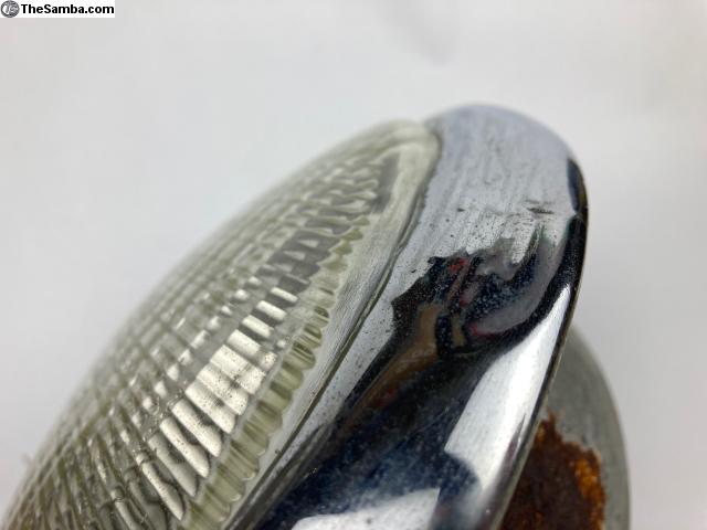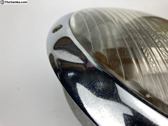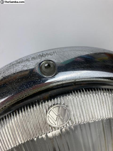 Pretty complete and with all the correct pieces. VW-logo´d BOSCH-script style glass. A decent pair but each has flaws, dings, bad reflectors, missing bulbholders and minor hardware. Only one of them has the BOSCH-stamp on top of the chromering. Please have a look at the photos for an idea of what condition these are.