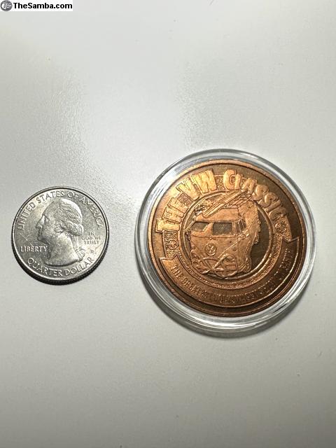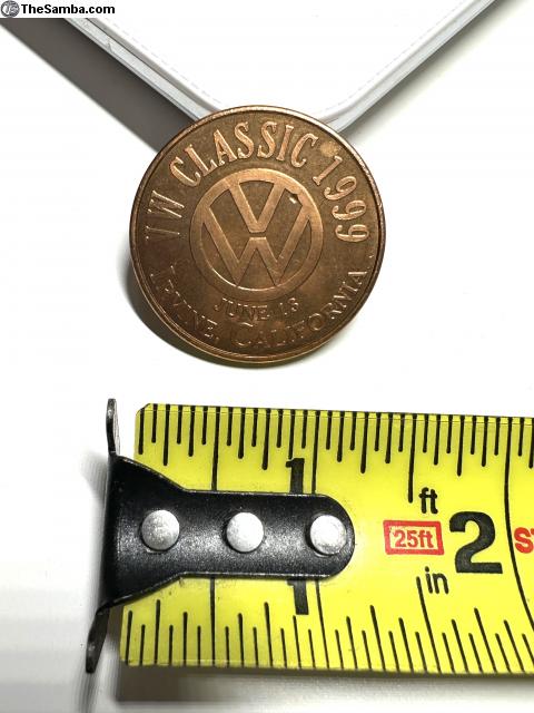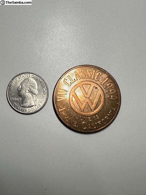 The VW Classic June 13, 1999 memorabilia coin. Irvine, California. "The Greatest Volkswagen Show on Earth" Price includes shipping, tracking in mainland USA. Make sure address is deliverable. Sold as is. Please add 4% for PayPal.