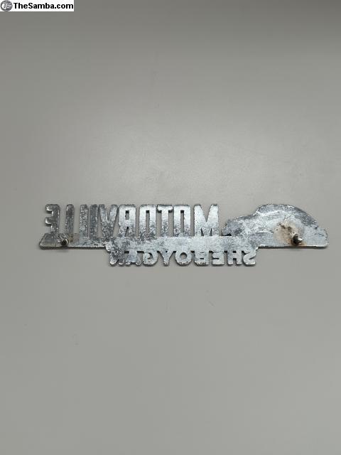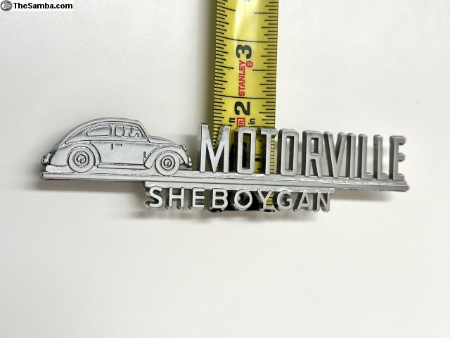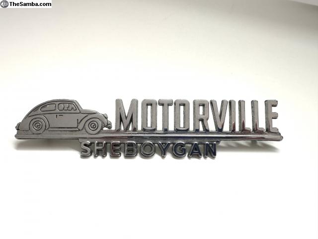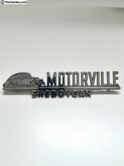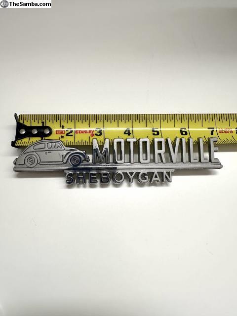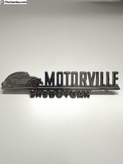 Motorville Volkswagen script badge from Sheboygan, WI. Price includes shipping and tracking in mainland USA. Please add 4% for PayPal. Let me know any script badge you are looking for, might be lucky I have it. Thanks